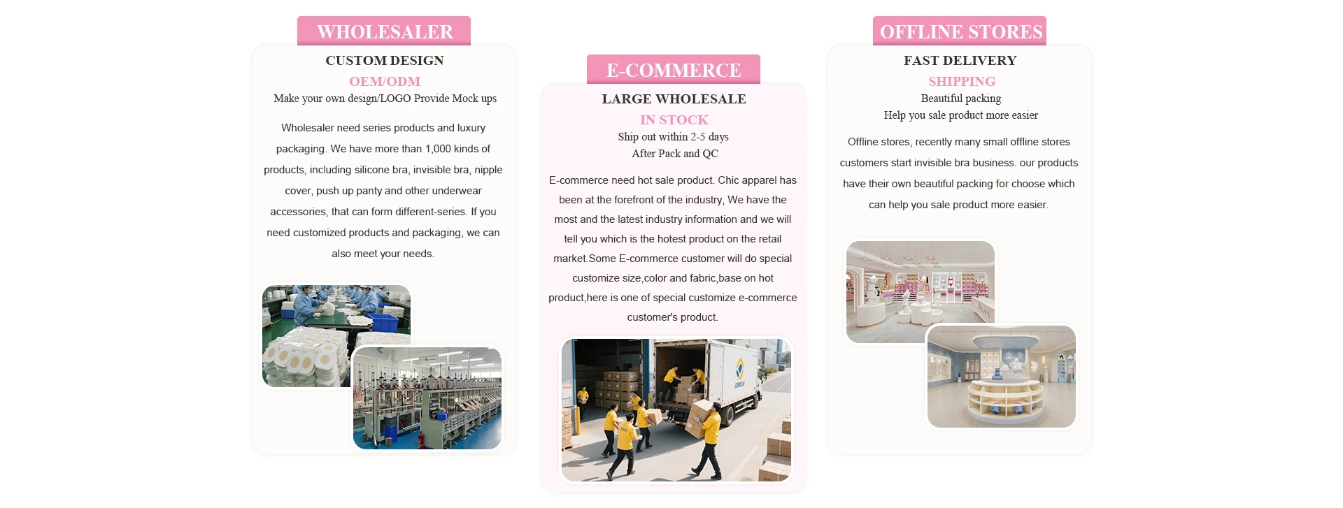 Prodotti principali: Reggiseno e accessori in silicone, biancheria intima, reggiseno, copertura per capezzolo, body Shapewear